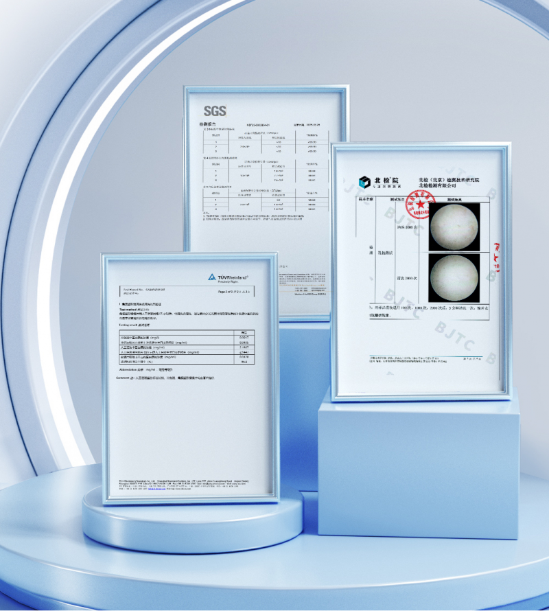 为此,蓝抱抱推出的全自动OK镜清洗仪,以完整的权威检测为“深度洁净”树立了可量化的标杆。其核心的“仿生云感揉搓技术”,通过模拟专业手洗的有效动作,实现了清洁过程的标准化。更重要的是,其清洁效能与安全性获得了三家国际国内权威机构的验证:SGS认证其除菌率高达99.99%,有效阻断感染源;德国莱茵TÜV认证其蛋白清除率达到96.4%,有效解决影响视觉质量和佩戴舒适度的核心难题;北京医疗器械检验研究院(北检院)出具的2000次清洗磨损测试报告,则证实其对镜片实现“零损伤”,为昂贵的镜片资产提供了终极安全保障。