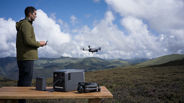 此外,只需搭配使用 DJI Power 无人机快充线,DJI Power 1000 Mini 即可对 DJI 部分无人机电池进行 DJI Power SDC 超级快充,Air 3 系列电量从 10% 充至 95% 仅需 30 分钟[1],三块无人机电池和 DJI Power 1000 Mini 组合使用,助力航拍效率大提升。