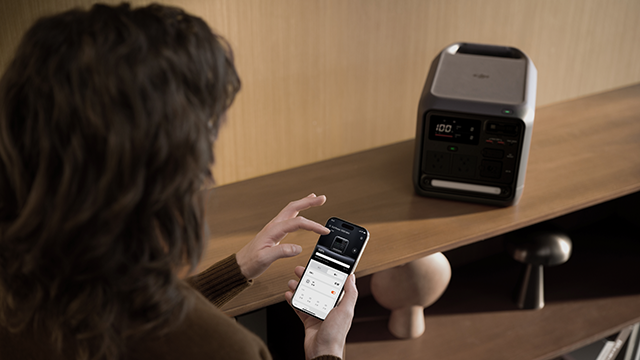 DJI Power 1000 Mini 还可直连全新 DJI Home APP,界面简洁易用,通过 APP 即可远程开关接口、调节参数,并实时查看主机温度与运行状态,电源状态一手掌握,让用户无论身在何处,都能便捷管理 DJI Power设备,享受智能高效的设备管理体验。
