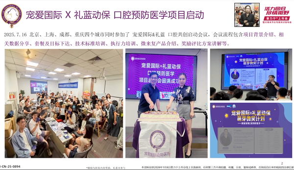 宠爱国际创始人李雪总,带来了骨关节炎x宠主需求:医院持续发展新驱力分享,指出宠物老龄化促使骨关节炎等慢性病高发,医院需提升专科综合服务能力满足宠物和宠主不断提升的需求。她以宠爱国际与礼蓝动保在2025年7月共创的口腔预防医学项目为例,强调礼蓝动保从产品技术、管理培训、诊室丰容等多维度赋能协作,该项目取得了显著的阶段性成果,口腔手术病例数提升70%,口腔科室总营收提升90%。
