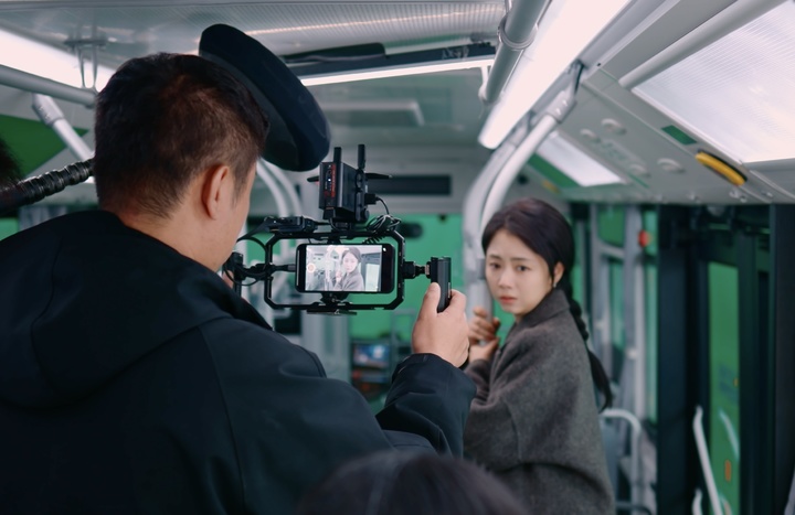 影片中有大量发生在公交车内部的戏份。摄影指导刘懿增说,这样狭小的空间,如果换成一整套传统摄影体系,往往意味着拆车顶、拆窗户、增加人力调度。等技术准备完成,演员的情绪早已被打断。