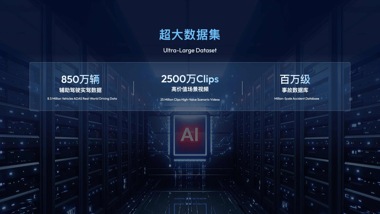千里浩瀚G-ASD拥有的“超大数据集”。不仅拥有吉利旗下累计850万辆车的辅助驾驶和累计百亿智驾历程,行业领先的2500万clips模型数据片段,还具备行业第一的百万车辆事故安全数据。在全生命周期数据闭环系统下,“数据飞轮”将持续迭代进化,辅助驾驶系统“越开越聪明”。