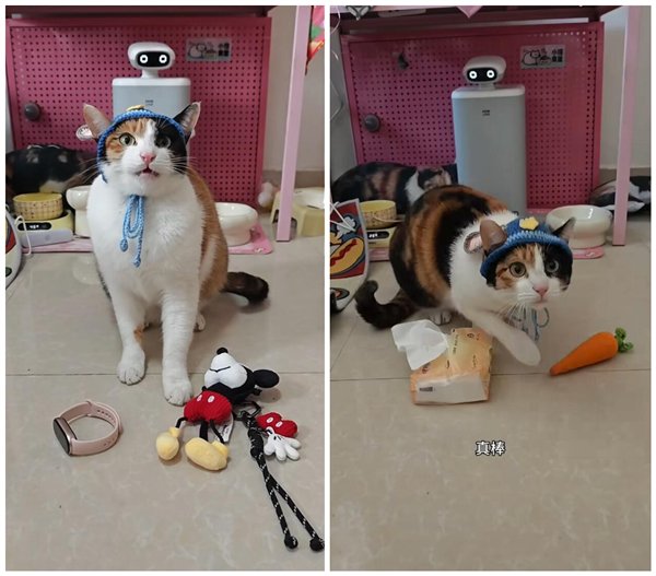 当猫咪碰触到正确物品时,主人便会说一句“真棒”并给食物奖励,这种反差萌的喜剧效果被网友广泛点赞和传播。