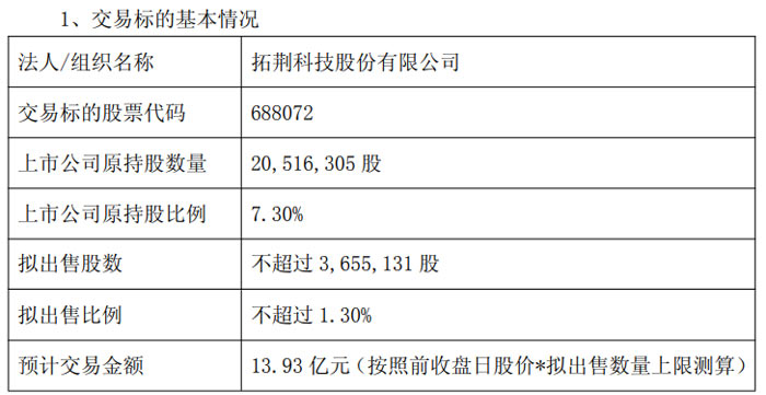 据悉,中微公司原持有拓荆科技 20,516,305 股股份,持股比例为 7.30%。此次拟出售的股票来源于 IPO 前取得的股份,目前按长期股权投资计量,且产权清晰,不存在抵押、质押及其他任何限制转让的情况,不涉及诉讼、仲裁事项或查封、冻结等司法措施,无妨碍权属转移的其他情形。