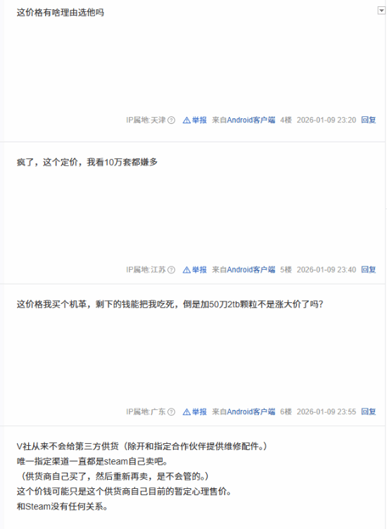 部分玩家认为定价过高,比PS5Pro贵2000闹麻了,也有玩家指出,这个价钱可能只是这个供货商自己目前的暂定心理售价。