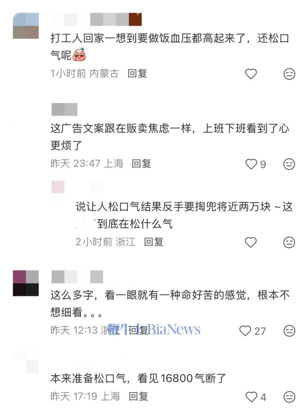 众多网友纷纷表示文案简直在贩卖焦虑,看的人心更烦。还有网友称,“本来准备松口气,看见价格‘气断了’。”