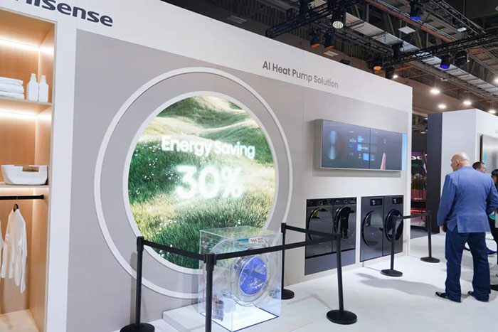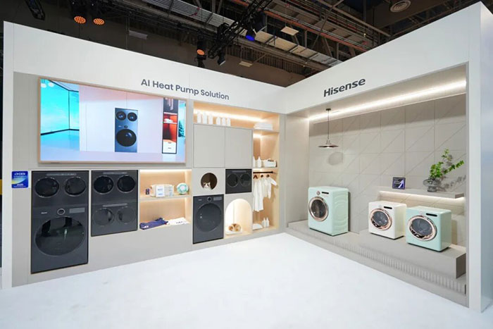 对于习惯将洗衣机放在厨房的欧洲市场,海信洗衣机减小了产品的机身厚度,让洗衣机可以嵌入到60cm的标准橱柜中。同时加强高能效产品的布局,热泵干衣机能效达到新欧标A级。
