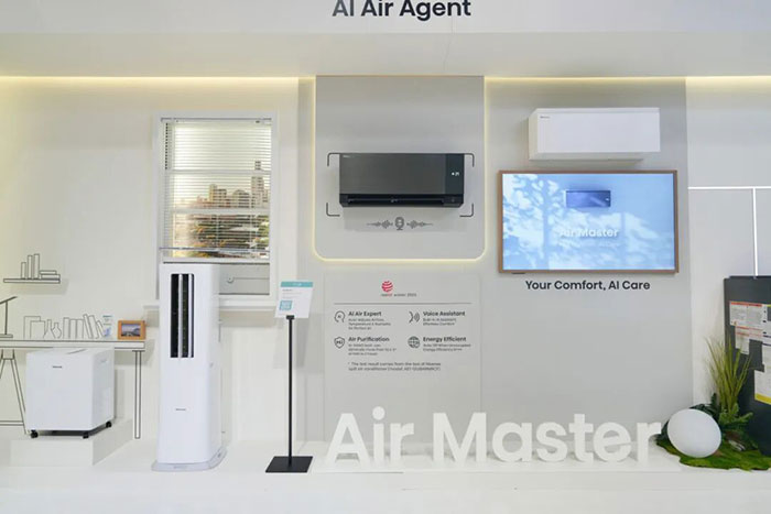 海信空调的核心展品Air Master,是海信智慧风Pro系列的代表力作。为避免传统空调直吹带来的不适,Air Master以高精度人感技术捕捉人体位置与活动状态,实现“风随人动”,为球迷提供清爽舒适的环境体验。