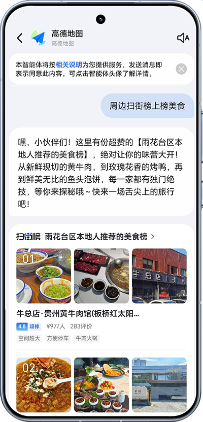 荣耀YOYO智能体生态体系与高德的深度合作,以入口融合为突破革新“服务触达”模式,释放生态多元协同价值。通过自然语音对话交互实现服务“零步直达”,用户无需复杂操作即可在YOYO智能体中直接调用高德服务;依托荣耀系统的位置情境感知能力,实现场景互通与体验“连贯智能”,让高德服务更贴合用户实时场景需求;基于用户当前定位信息,荣耀系统为高德智能体提供多形式出行方案及较优路线支撑,持续强化出行服务赋能;同时,荣耀生态为高德优质消费推荐搭建精准分发场景,让特色可信榜单高效触达有即时消费决策需求的用户,形成服务与消费的良性互动闭环。