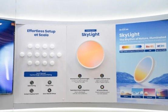 此外,博联还展出了多款设计美学与智能功能兼备的创新单品。其中,具备晨曦、星空等多种情景光效的智能吸顶灯,可根据用户心情、时段一键切换氛围,不仅拓宽了家庭光环境的个性化选择,也让照明从单一的功能需求,升级为能够调节情绪、营造空间美感的重要元素。同时,包括智能中控屏、面板、传感器、安防产品在内的全屋智能单品矩阵也一同亮相,完整展现了博联从核心连接能力到终端设备的一体化解决方案能力。