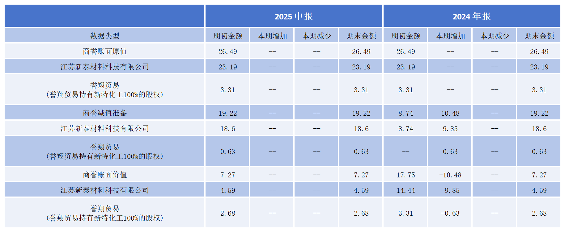 2024年,行业低谷时,公司计提商誉减值准备10.48亿元,直接导致当年巨亏13.61亿元。其中,因六氟磷酸锂盈利能力下降,对新泰材料计提商誉减值9.85亿元;因新特化工未完成承诺业绩,计提商誉减值0.63亿元。