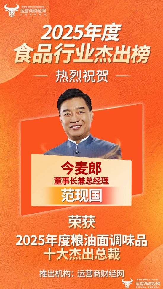 近日,由国内知名财经媒体运营商财经网独家编制的“2025年度粮油面调味品十大杰出总裁”榜单正式公布,今麦郎董事长兼总经理范现国成功入选!