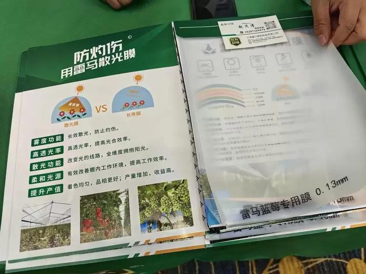 此次博览会的主题集中在高原蓝莓种植上,在高海拔、强光照的“天赋”背后,高原种植特有的“甜蜜负担”——果实灼伤问题,也引发了产业链各环节的深度思考。位于B10展位的云南雷马塑料制品有限公司,以其创新研发的“防灼伤®散光膜”系列产品,为这一痛点提供了科技解决方案,展现了设施农业覆盖材料在赋能产业升级中的关键力量。