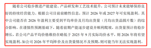 其进一步指出,若2026年公司产品均价维持在略低于2025年9月实际均价水平,则2026年将有望实现盈利。