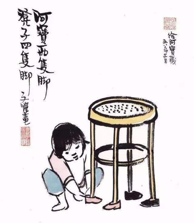 丰子恺作品,“阿宝两只脚,凳子四只脚”。
