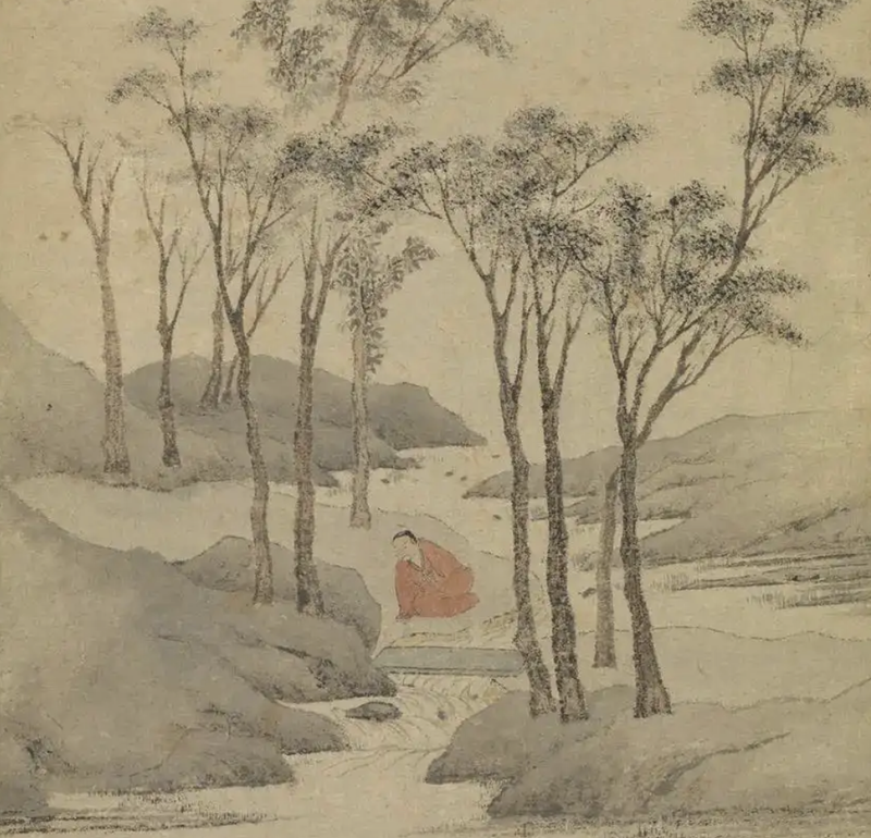 明代文徵明《听泉图》局部。