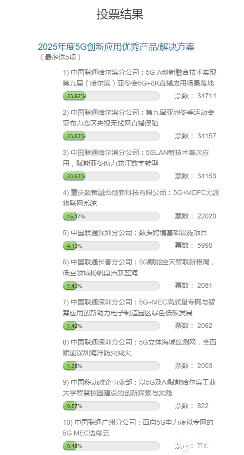 目前,由运营商财经网举办的2026财经TMT领秀榜评选活动已经进入白热化阶段,各运营商公司之间竞争激烈,难分伯仲。接下来公布“2025年度5G创新应用优秀产品/解决方案”奖项暂时的投票情况。