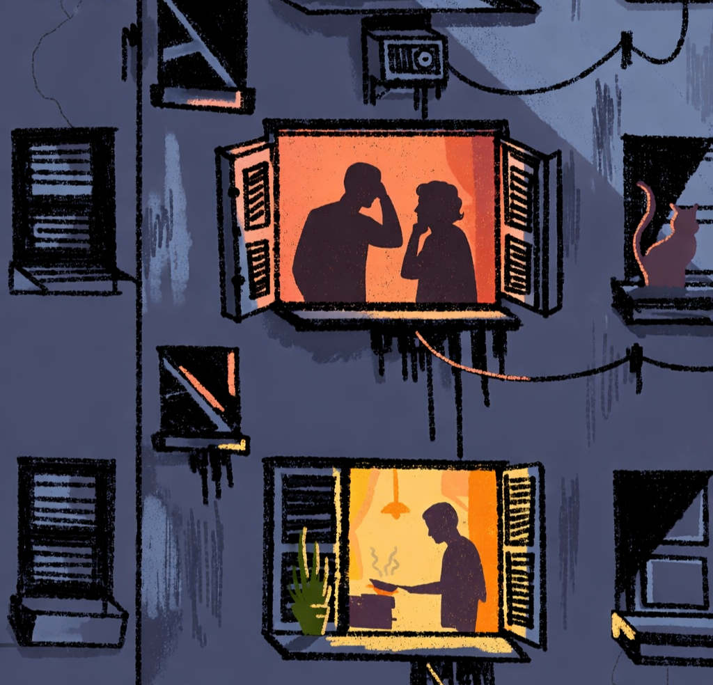 两者共同点是:空间狭小。根据现行社会福利署的法规,2024年6月前持有牌照的安老院,最低人均楼面面积标准为6.5平米。铁索婆婆住在政府资助的安老院,父亲则住在私营养老院,床位之间都用薄板隔开,放置小于一米的床和一个细小的置物柜,没有隔音,完全可以听见旁边阿婆的声音。她父亲住的私营养老院,开在一个老旧小区的二楼,铁索很无奈地说,“老人家去了二楼,还有机会出来吗?大部分时候推了他们上去,真的就等到死这一刻才推出来”。