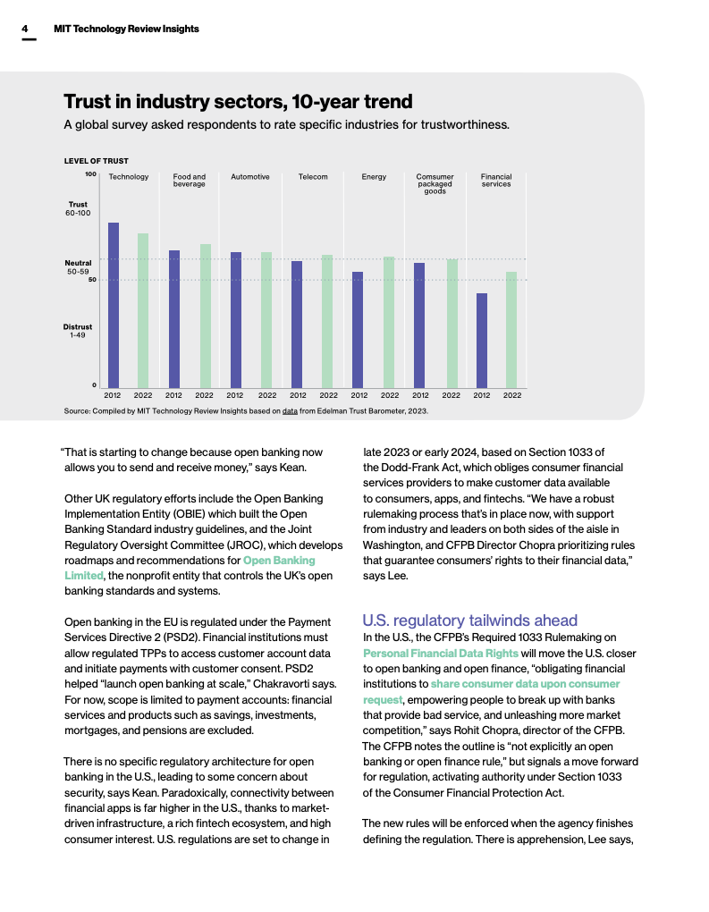 监管环境则呈现出明显的区域差异。英国与欧盟已通过明确立法推动开放银行落地,而美国长期依赖市场驱动的技术连接。随着美国《多德-弗兰克法案》第1033条相关规则预计在2024年前后落地,金融机构将被要求在消费者请求下开放数据,这被视为美国迈向开放金融的关键制度拐点。