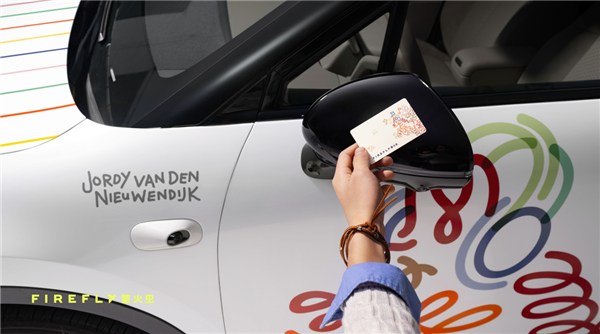 这款车是firefly萤火虫在马年新春为用户打造的限定珍藏版,车身艺术家亲笔签名标识,并提供独一无二的NFC卡片钥匙以及配套彩绘家充桩。