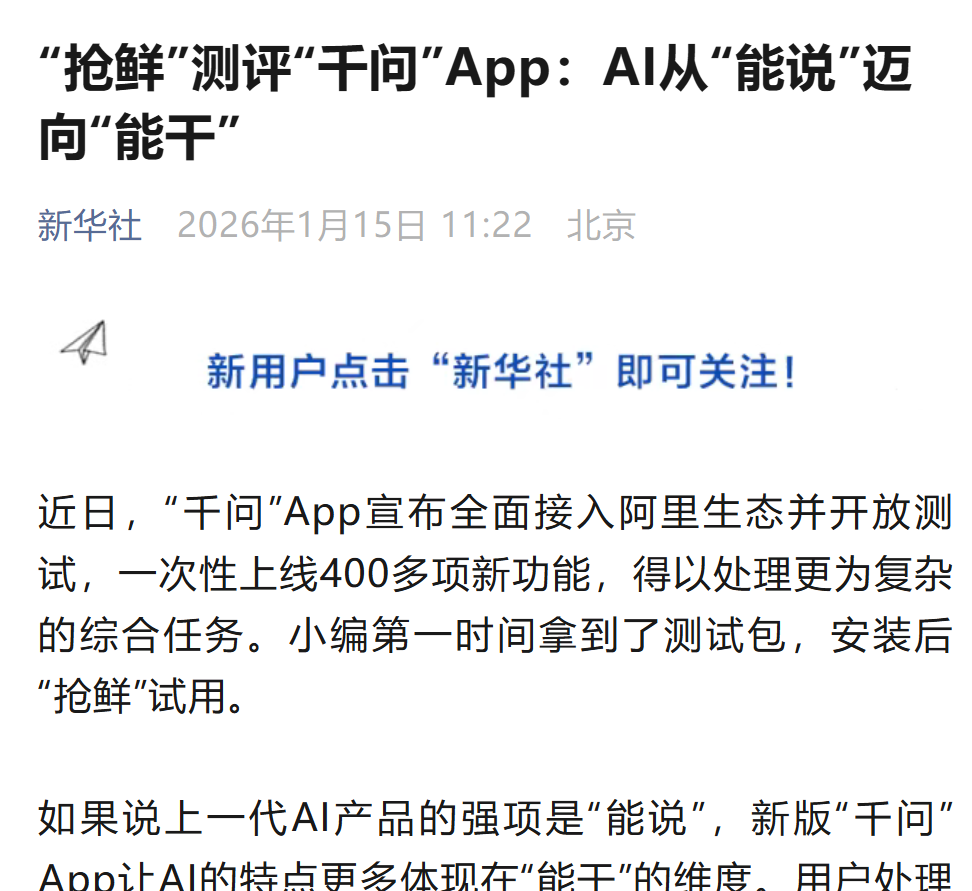 相比之前的大模型,这一次千问的升级确实非常牛逼,用新华社的评论讲: