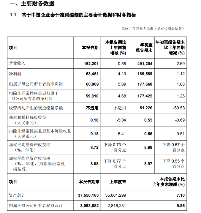 财报显示,2025年前三季度,实现营业收入4912.04亿元,同比增加128.56亿元,增长2.69%。实现归属于母公司所有者的净利润1776.6亿元,同比增长1.08%。