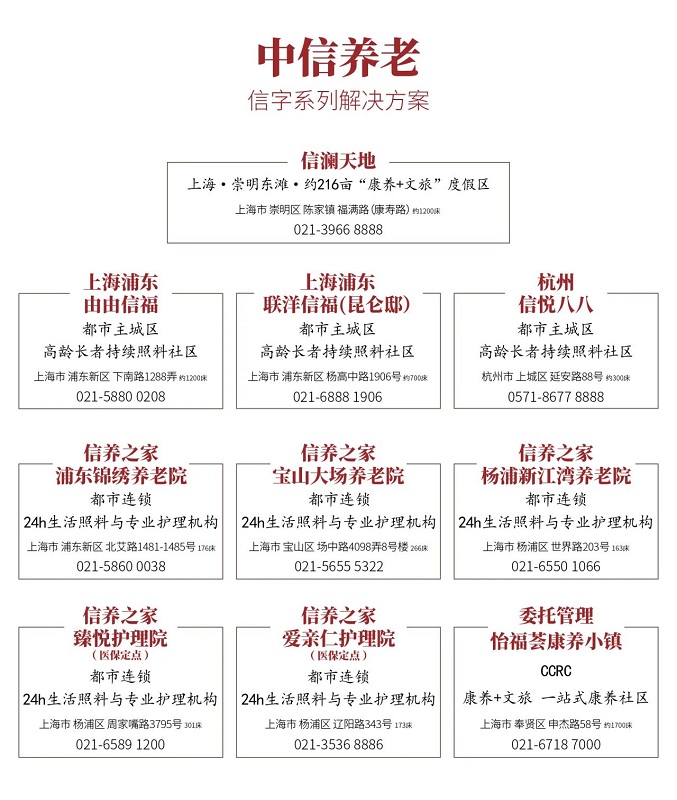 在此之前,中信养老已经与中信信托、上海信托签署合作协议,旗下9家自运营项目,已全线开通信托支付通道。在住老人可以通过信托账户的“受托支付”功能,实现日常养老机构服务费用的便捷支付。
