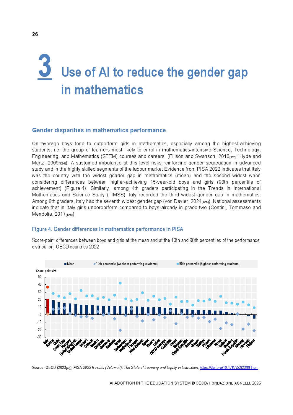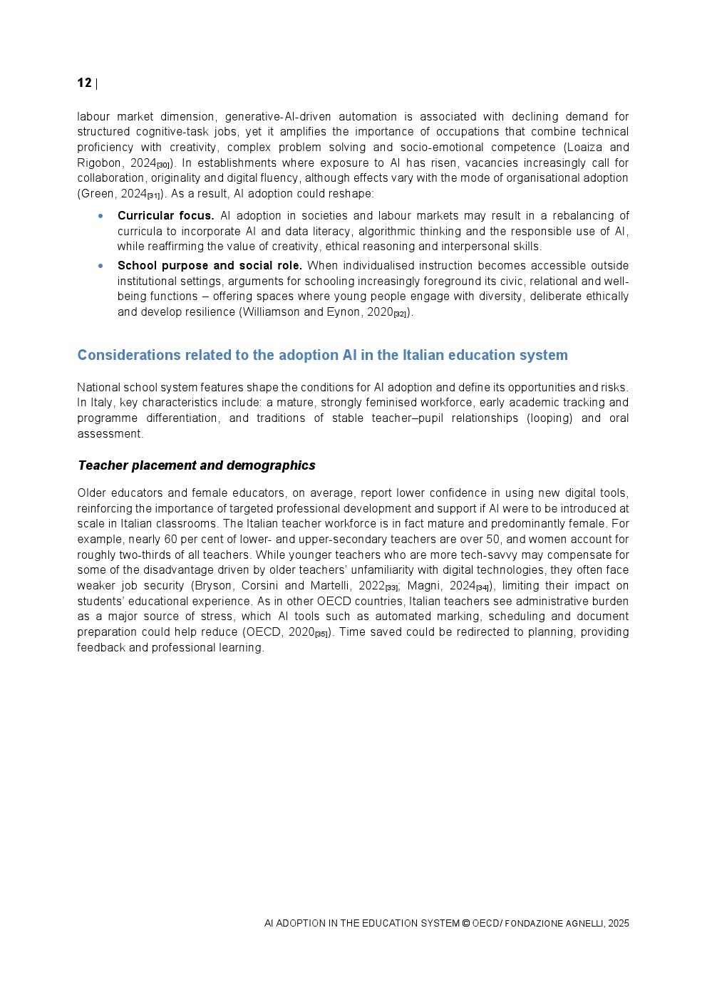 在教师态度层面,认可与担忧并存。意大利有60%的教师认为AI有助于支持特殊需求学生,高于OECD平均水平,但同时67%的教师担心AI助长学术不端,32%认为算法可能放大偏见。这种结构性分歧意味着AI的制度化应用仍受信任门槛制约。