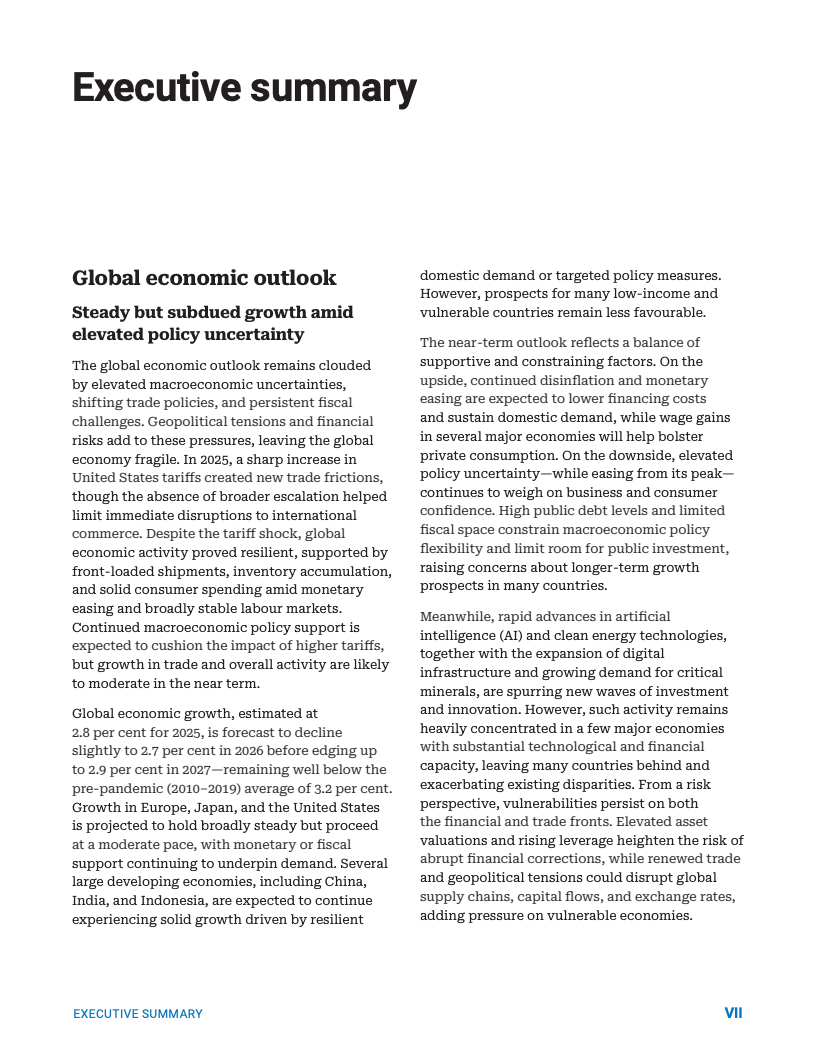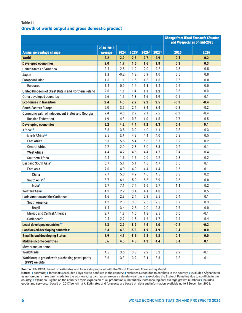 综合来看,全球经济正进入低增长、低投资、高不确定性的“平台期”。短期内,通胀回落与货币宽松将为经济托底,但中长期增长取决于生产率提升、贸易体系稳定以及对人工智能等新技术的有效转化。若全球政策协调不足、地缘政治风险上升,世界经济可能长期徘徊在潜在增速下方;反之,若结构性改革与国际合作取得进展,2026年之后全球增长仍存在温和改善的现实窗口。