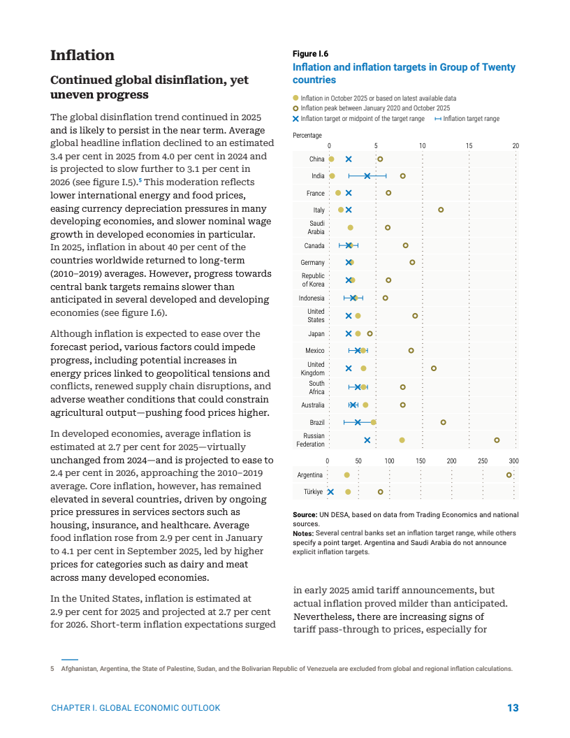 通胀形势整体回落但仍高于疫情前水平。发达经济体通胀率自2022年的高点明显下降,2024年至2026年逐步回归至2%至3%区间,而多数发展中经济体通胀黏性更强,部分最不发达国家在2025年通胀率仍超过15%。这一差异导致货币政策节奏出现明显分化,发达经济体进入渐进式宽松周期,而部分新兴经济体仍需在稳增长与稳汇率之间艰难权衡 。