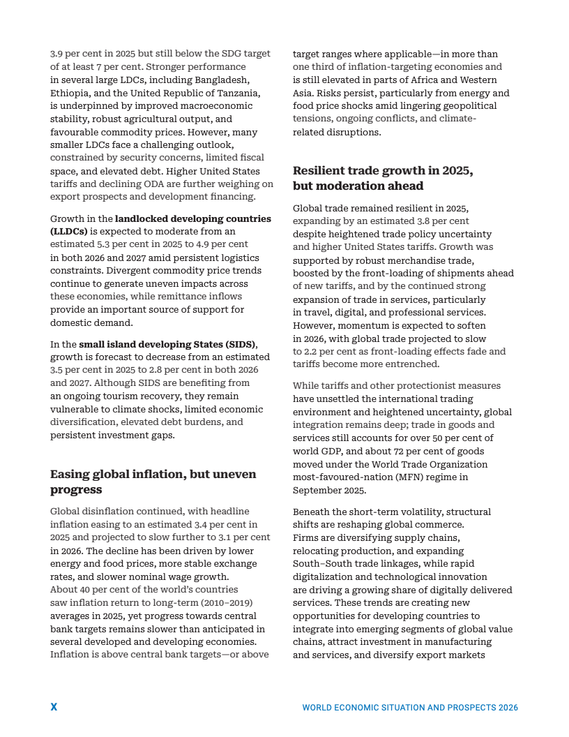 国际金融与发展融资环境趋紧。报告显示,跨境资本流动规模虽保持活跃,但波动性显著上升,官方发展援助前景偏弱,难以满足低收入国家在债务重组、气候转型和社会支出方面的融资需求。与此同时,侨汇在多国继续保持增长,成为部分经济体缓冲外部冲击的重要资金来源 。