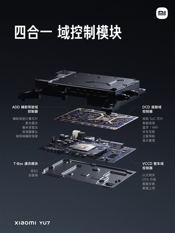 小米目前采用的自研四合一域控制模块,就是在为小米自研芯片上车铺路。