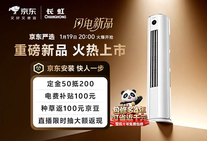 新品多重福利叠加,年货节入手超划算。1月19日晚8点准时开抢,多重优惠叠加让焕新更划算。活动期间,定金50元可抵200元,直接立省150元。下单即享双重补贴,前四小时下单立减100元电费补贴,种草分享还能返100元京豆。直播间福利持续加码,不仅有大额返现抽奖,更支持6期免息,减轻付款压力。售后保障再升级,整机享受十年包修服务,全程免上门费、免人工费、免维修费,服务标准远超行业常规。注意:具体权益使用规则以活动页面说明为准,详情可咨询对应长虹空调京东自营旗舰店客服。