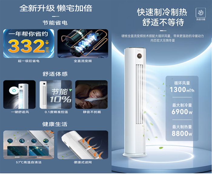 节能层面,该款柜机搭载APF值5.0的新一级能效系统,搭配升级全直流变频技术,对比三级能效空调可实现25%的省电效果,一年约能节省332度电,为家庭日常使用省下真金白银。全直流变频架构带来压缩机、内外机电机、电子膨胀阀的四重协同运行,配合每小时1300立方米的大循环风量,既实现快速制冷制热,无需久等就能调至舒适温度,又能保持低耗运行,同时静音运转不打扰家人春节闲谈的温馨氛围。