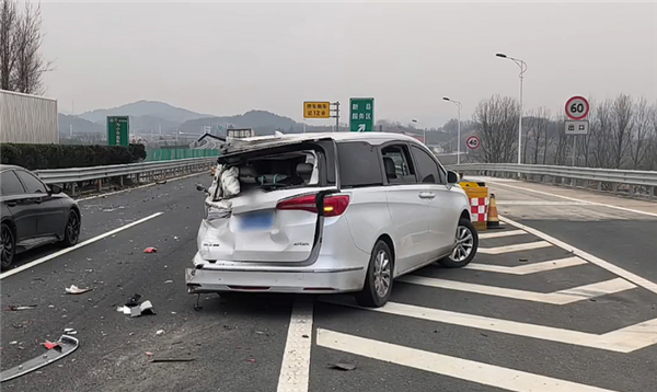 事故造成两车受损,其中GL8后部塌陷严重,而货车车头右前方也有明显撞击痕迹,幸无人员伤亡。