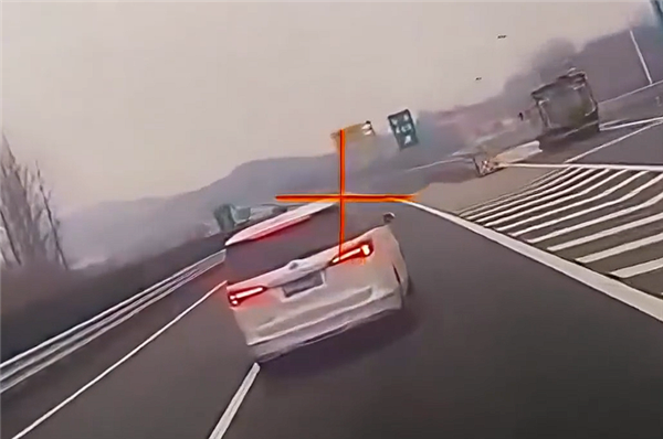 当时王某驾驶一辆白色商务车在快车道行驶,行经新县服务区路段已进入实线区后,他猛然发现错过入口,便在未观察后方来车的情况下,直接急刹减速并压实线向右变道。