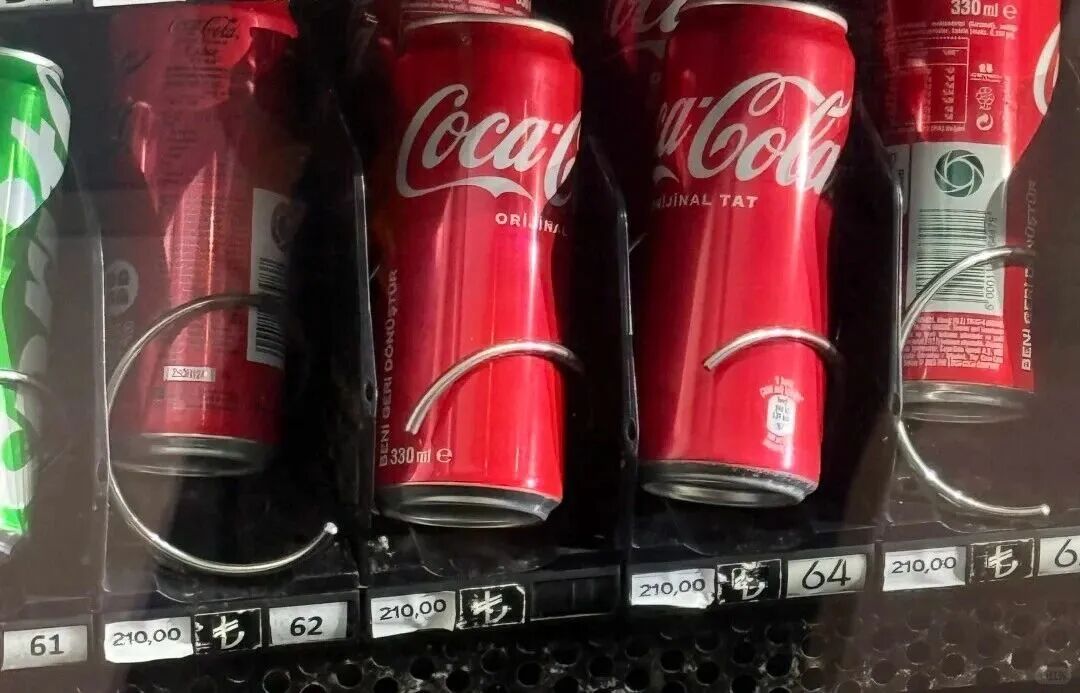 一瓶罐装可口可乐标价210里拉,折合人民币33块9;