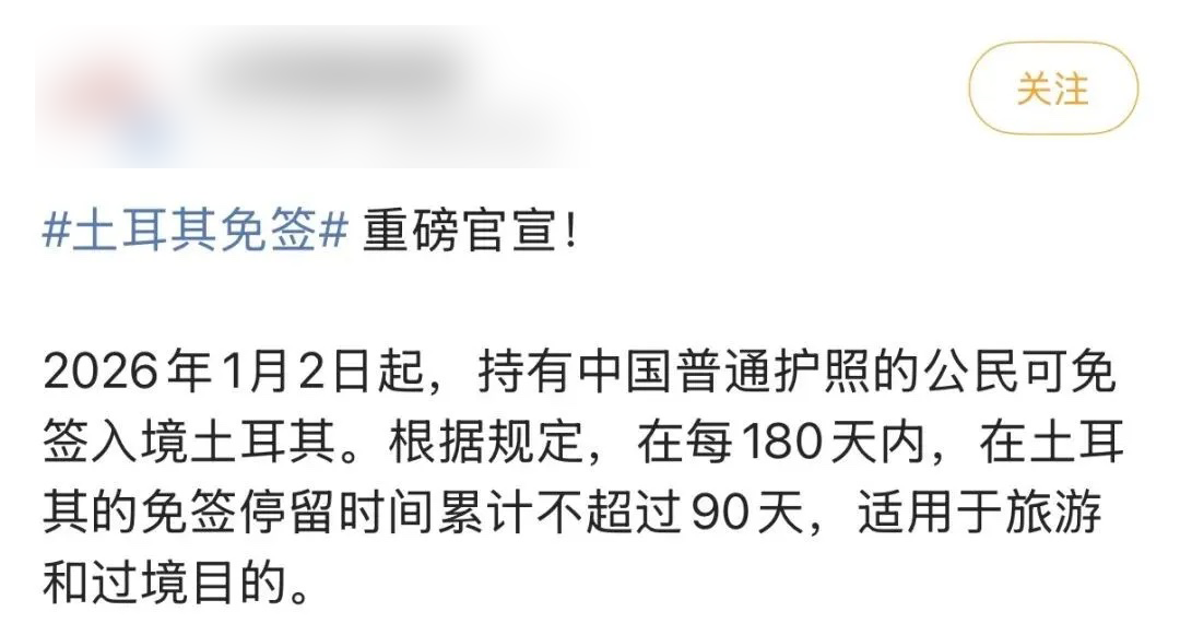 因为土耳其,对中国免签了。