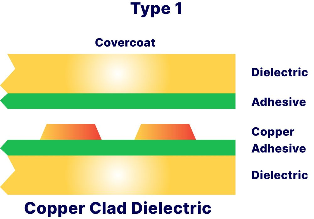 1 类:单面柔性印制板,包含一层导电层,可带或不带加强板。
