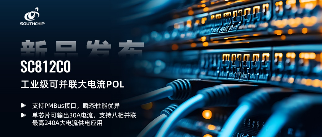 近日,南芯科技宣布推出面向工业市场的可并联大电流负载点电源 (POL, Point of Load) SC812C0,为边缘计算 SoC、通信设备、服务器、交换机等场景提供高效率、高瞬态性能的电源管理解决方案。SC812C0 尺寸仅 4mm*5mm,兼容 PMBus 接口,单芯片可支持 30A 输出电流,同时可扩展至最多 8 个模块的并联,实现最高 240A 的大电流供电应用。