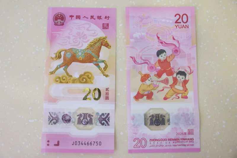 2026年贺岁纪念钞。据中国人民银行近日发布的公告,2026年贺岁纪念币和纪念钞全国发行数量为1亿枚、1亿张,贺岁币每枚面额10元,贺岁钞每张面额20元。新京报记者李木易 摄