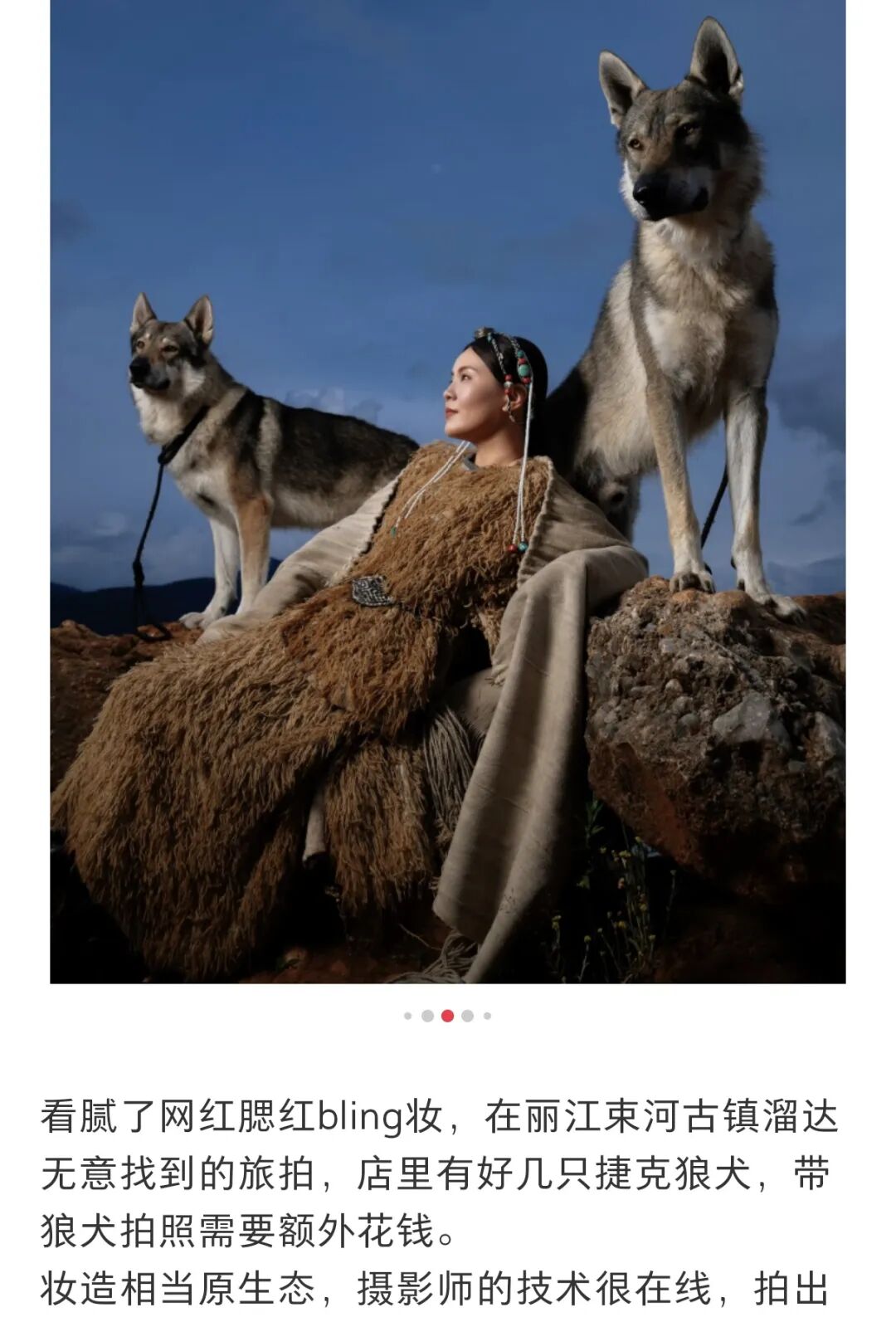 比如丽江束河古镇,有旅拍店专门养了捷克狼犬,就为了拍更原生态更符合当地特色的照片,既有体验感也能出片。