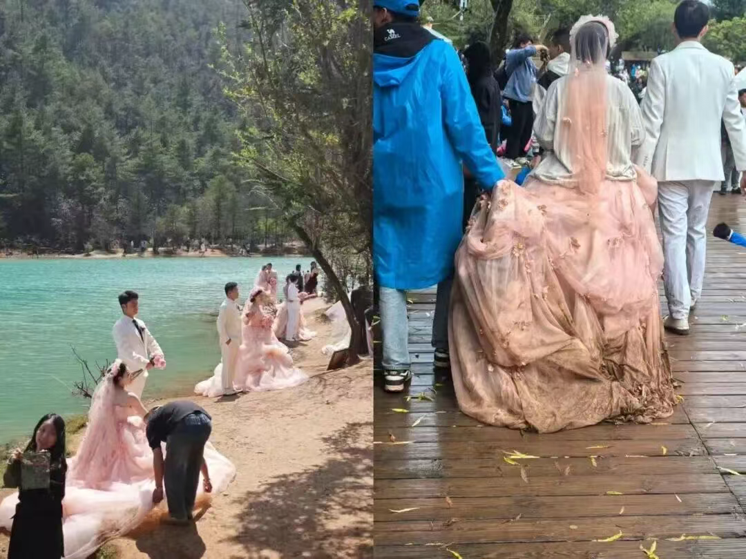 尤其随着“目的地婚礼”模式走红,丽江古城变成了一座巨大的照相馆。光是古城区的婚拍公司就超过2000家,经济规模突破10亿元。