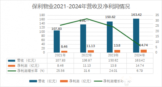 根据财报数据显示,2023年保利物业实现收入约为150.62亿元,较2022年同期增长约10.0%;2023年保利物业净利润约为13.8亿元,较2022年同期增长约24%。2024年依旧保持增长势头,营收达163.42亿,净利润达14.74亿,比黄海担任保利物业董事长时期的业绩还要好。