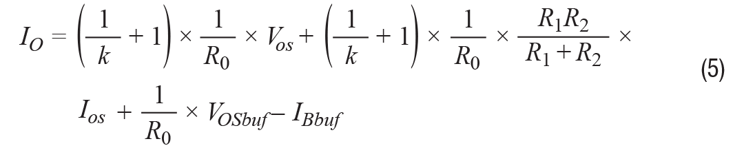 忽略增益电阻的不匹配,并考虑R1/R2 = R3/R4= k,R1//R2= R3//R4。输出失调电流取决于放大器的失调和偏置电流,如公式5所示。