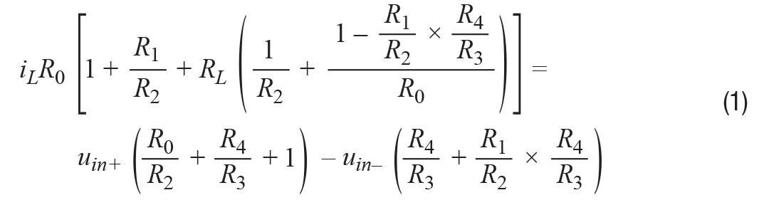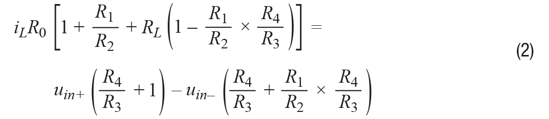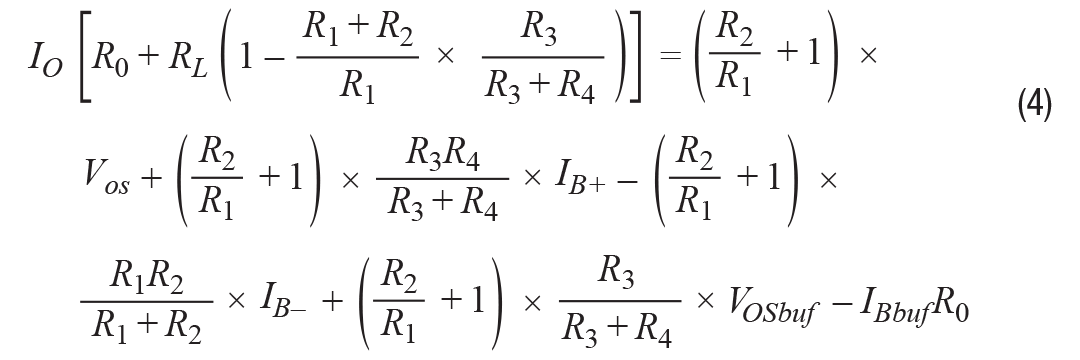 如果R1/R2 = R3/R4 = k,则该公式变为公式3。输出电流与负载无关,仅受输入电压控制。这是一个理想的VCCS。