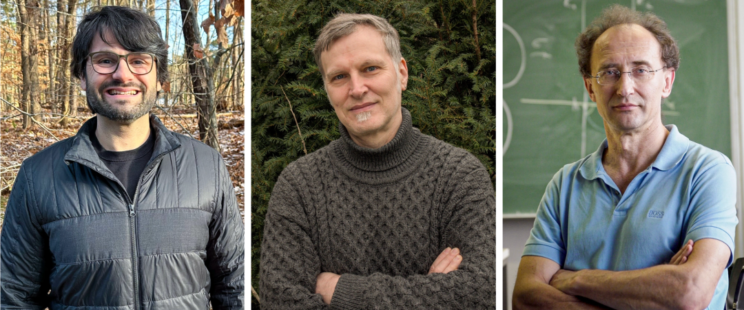 Andrew Sageman-Furnas(左)、Tim Hoffmann(中)和 Alexander Bobenko(右)构建了一对新的形状,从而解决了一个长期存在的猜想。