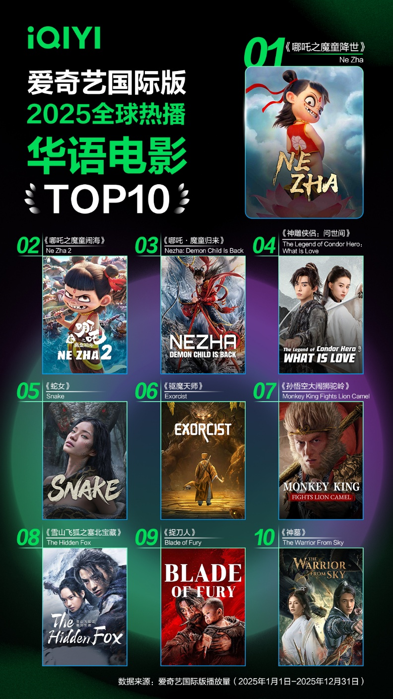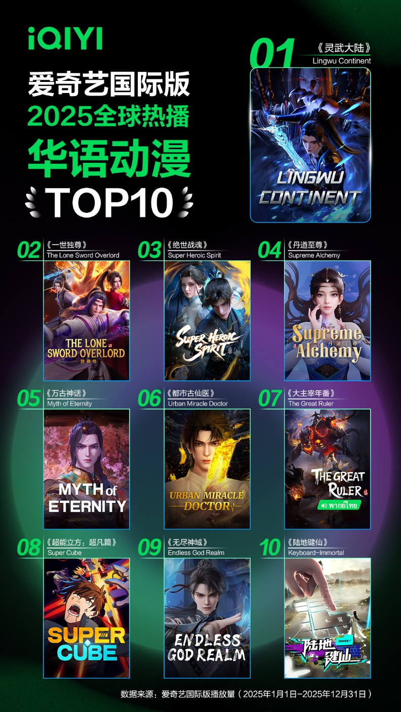 2026年1月20日,《爱奇艺国际版2025全球内容热播榜》正式发布,爱奇艺国际版2025年内容播放量同比增长114.5%,华语内容成为驱动这一增长的核心动力。年度榜单显示,融合“中医文化”元素的华语都市爱情剧《爱你》登华语剧集榜首;《灵武大陆》《哪吒之魔童降世》等热血动漫和电影深受海外用户喜爱。 华语内容外,泰剧、日漫、韩国电影表现亮眼。