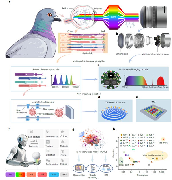 此次研发的 SuperTac 传感器受鸽眼启发,创新融合多光谱成像与摩擦电信号,采用导电聚合物、荧光层等构成的多层超薄感知皮肤。