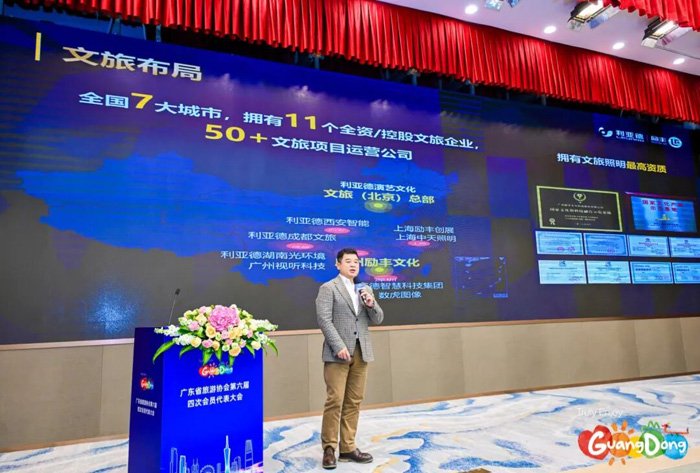 在此背景下,本次大会汇聚全省文旅行业精英,围绕"十五五"规划文旅趋势分析、科技赋能文旅、创新文旅运营等热点议题展开深入交流,为广东文旅高质量发展注入新动能。利亚德集团总裁、励丰文化董事长、广东省旅游协会副会长袁波作为重要嘉宾受邀出席,并围绕"科技赋能文旅高质量发展"发表专题演讲,分享利亚德励丰文化在科技与文化深度融合方面的实践探索与创新成果。